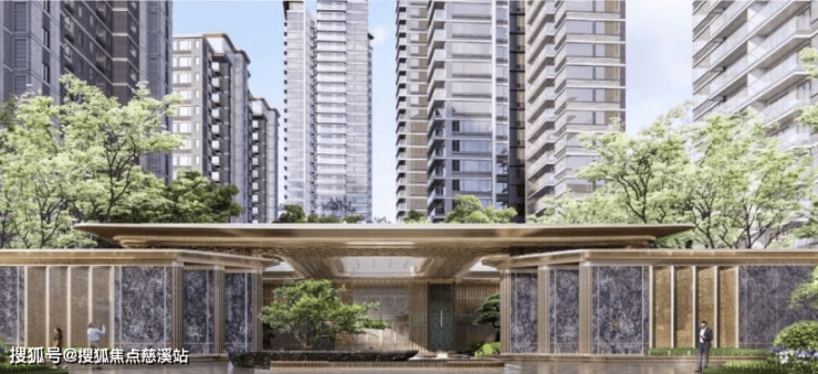以“凤凰展翼”为灵感,设计约52米U字型超长门府界面,约7米高超尺度归家大堂,双层飘板塑造凤凰展翼的大气形态,居住者的气派门面