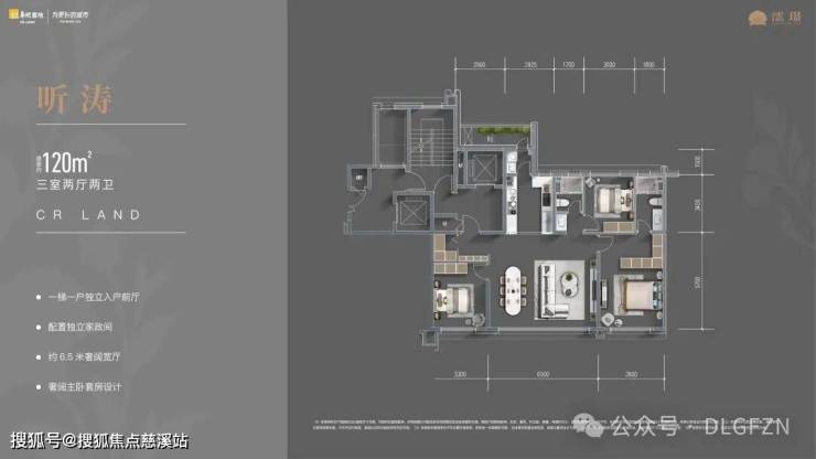 🔺120平,小高17层,一梯一户,三室两厅两卫,层高3.1米,得房率约100%