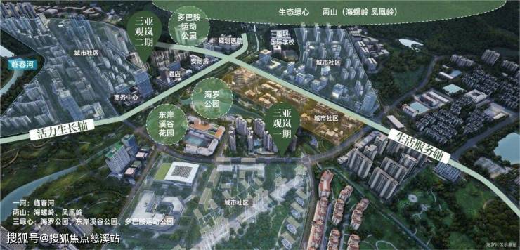 板块借“一河两山三绿心”织就三亚城芯罕见“山水绿网”,让自然与城市资源双向赋能,每一步皆穿行于自然,重塑城芯生活价值。