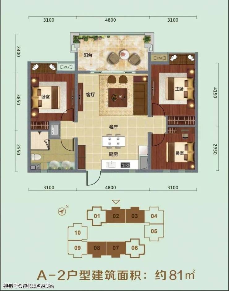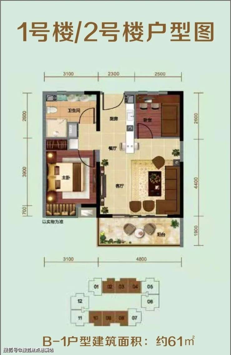 主力产品:59~61㎡两房 78.86~81.25㎡三房