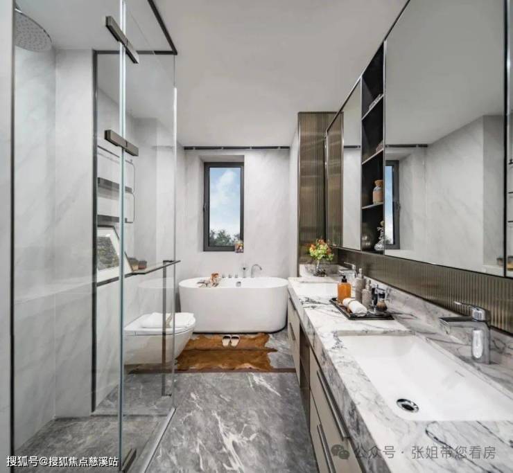 卫浴产品方面,陶瓷选用的是杜拉维特、唯宝级别品牌,五金为高仪、汉斯格雅级别品牌。