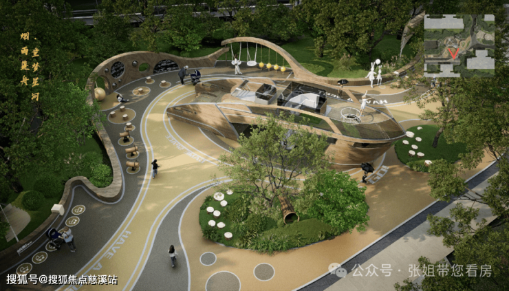 童玩区则以运河为主题,将设施打造成一艘巨型「游艇」。「船头」是瞭望平台,「船身」是滑梯攀爬设施,四周如「波浪」般起伏的构架,成了秋千和看护坐凳。