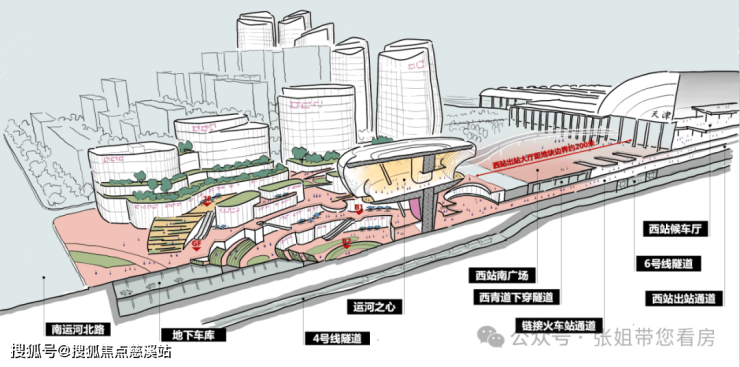 项目紧邻天津西站,出了西站就能看到,承担着城市“第一眼形象”的重任。是天津对外的“城市门面”。项目规划建设用地面积约12.73万平米,规划地上建筑面积约37.9万平米。计划涵盖总部办公、特色商业、星级酒店、科技高端住宅和“运河之心”等多功能建筑(具体以实际交付现状为准)。未来还会与山姆红桥会员店(在建中)、大兴国际机场西站城市航站楼(在建中)等形成联动。