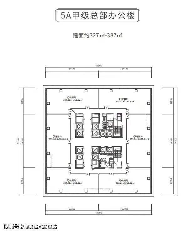 约187米高迎宾路首排地标,约4.4米标准层高,约13.5米全挑空无柱化大堂,16部鼎配电梯,建面约327-387㎡产品。