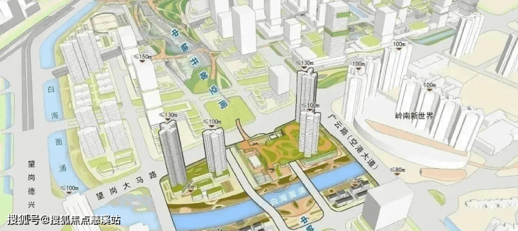 一共是4栋住宅建筑,层高在27-39层之间,靠近广云路的2栋高一点。