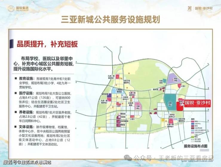 【新城公共服务设施齐全】配有人民医院新院区,多所学校及养老机构,近距离享受提升后的城市服务水平三亚新城鸟瞰图三亚行政中心效果图三亚文化中心效果图新城公园景观体系新城交通路网新城公共服务设施