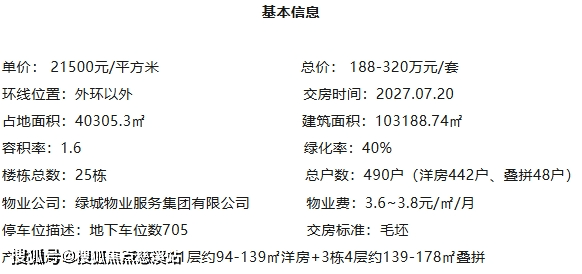 绿城晓月熙棠产品为6-11层洋房和4层叠拼,洋房面积约94-139平米,共442户;叠拼面积约139-178平米,共48户: