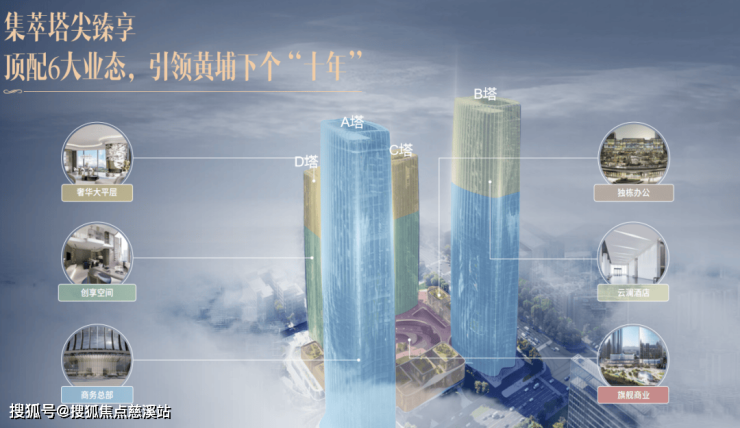 【建筑高度】 A、B塔约200米(科学城第一地标双子塔);C、D塔约140米