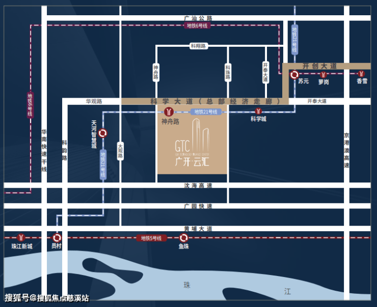 【地址】 黄埔科学城核心,21号线神舟路地铁上盖,1站天河智慧城