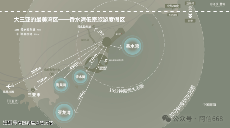 「一半海浪 一半霓虹 」· 湾城一体化,距繁华城央最近的湾区· 2025年内春澜公路通车,项目可直通陵水城区,从湾区到城区生活环境一“路”切换· 项目至陵水县城距离缩短至少6公里,至高铁站距离约7公里