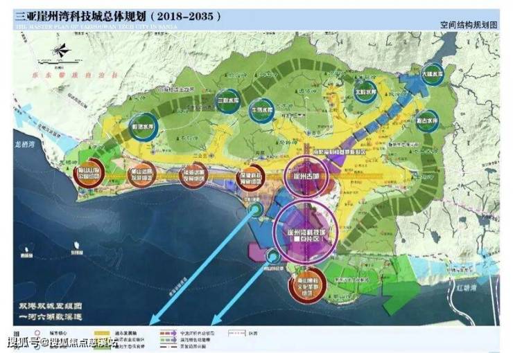 双港包括南山港和中心渔港;双城包括崖州湾科技城重点片区(包括南繁科技城、深海科技与大学城、崖城综合服务区)和崖州古城;五组团包括南山佛教文化圣地组团、梅山山海公园组团、保港科技预留组团,以及梅山、镇海远景发展组团。