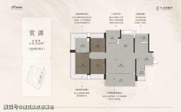 产品方面,项目首推户型以刚改、改善为主,有98m²、116m²、120m²、132m²和148m²五个面积段,四房两厅两卫,均为使用率超100%的新规设计。
