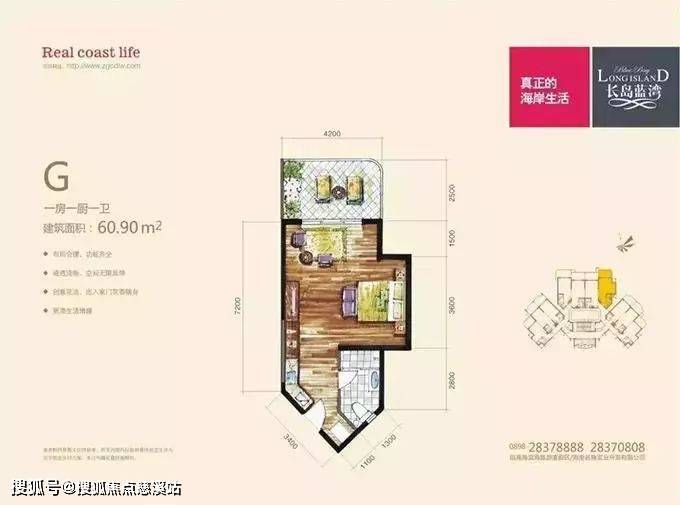 一期在售户型建筑面积有43-97㎡不等的单间到两房,户户配备超大的观景阳台,给你足够的活动空间,当你站在阳台时大片大片的海景就能映入眼帘。