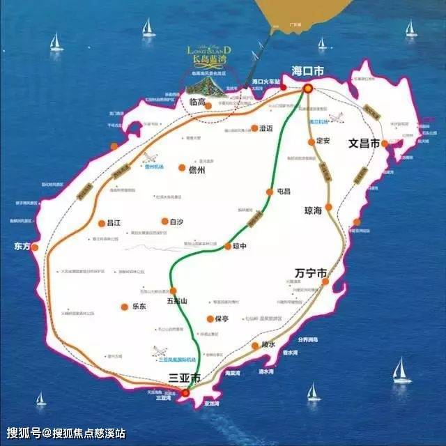 二机场指美兰机场和规划中的西部儋州机场,从美兰机场出发,60分钟直达项目;