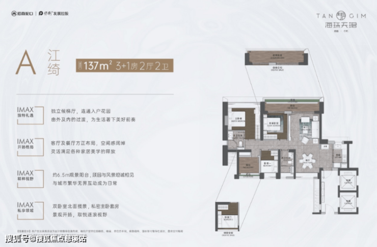 目前海珠天珺的住宅余货已经屈指可数,所剩户型涵盖低区137㎡、140㎡和200㎡四房,以及高区141㎡四房和262㎡大平层户型,还有一套顶楼418㎡的天际江景大平层产品。