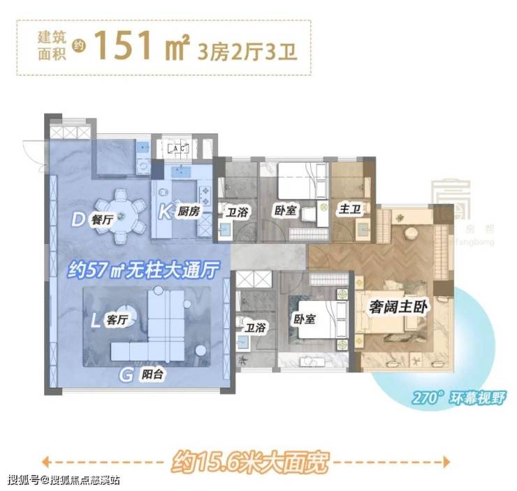 南向面宽依旧做到约15.6米,整个户型很“通透”,置身家中任何一处,目之所及皆是美景。