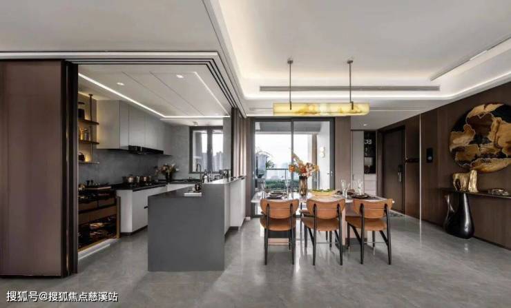 开放式的厨房,消除了传统厨房的局促感,搭配大面积操作岛台,让烹饪与社交完美融合。