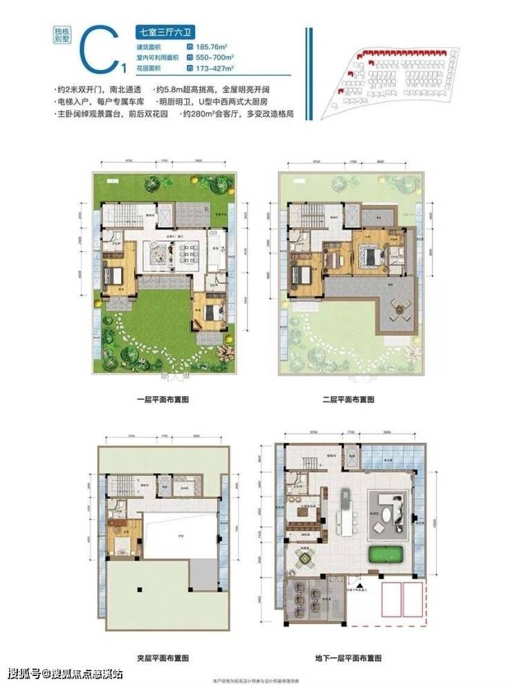 平墅:约109—169㎡ 一梯一户,康养平墅