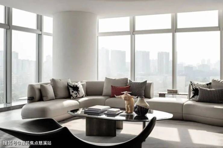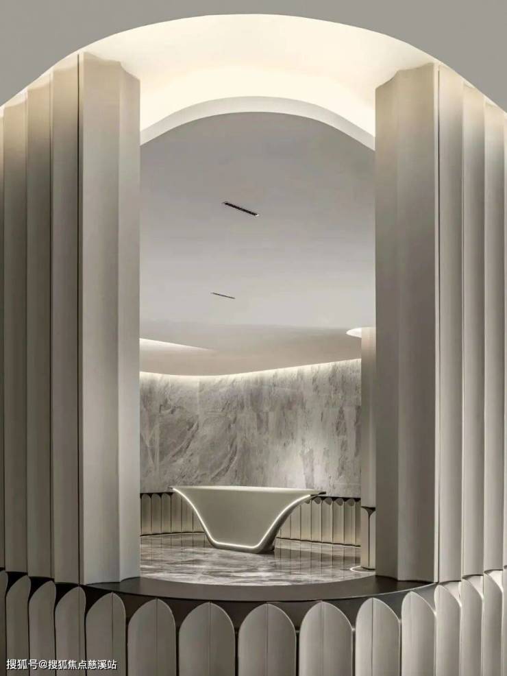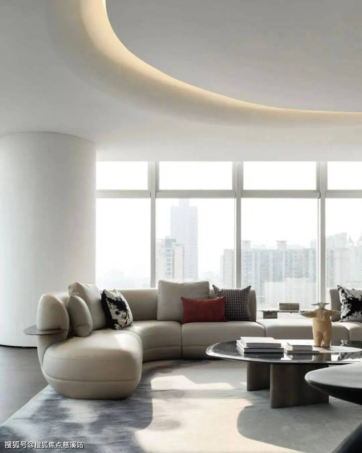 优雅柔长,藏于细部,秩序与沉稳的联结是都市精英气质的体现,流畅开放的空间曲调在其中温柔延展,大体量的墙体曲线形态彼此串联,营造出优雅、时尚的空间氛围。