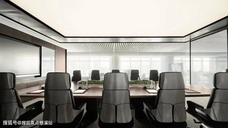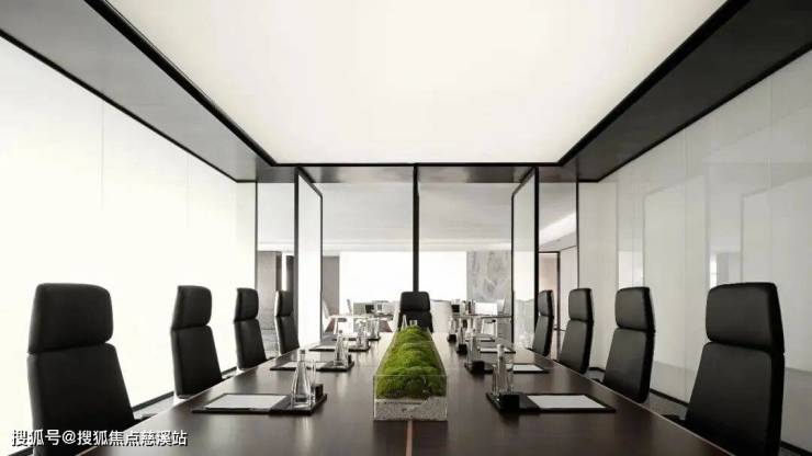 的线条,在空间探索井然的秩序。光的筛入透过雾化玻璃,筛进温柔的光线,让会议桌上陈列的苔藓也多了一份自由呼吸、生长的姿态。