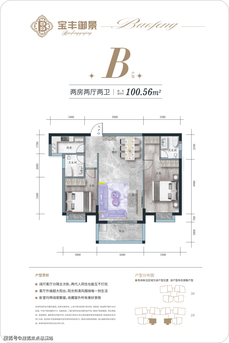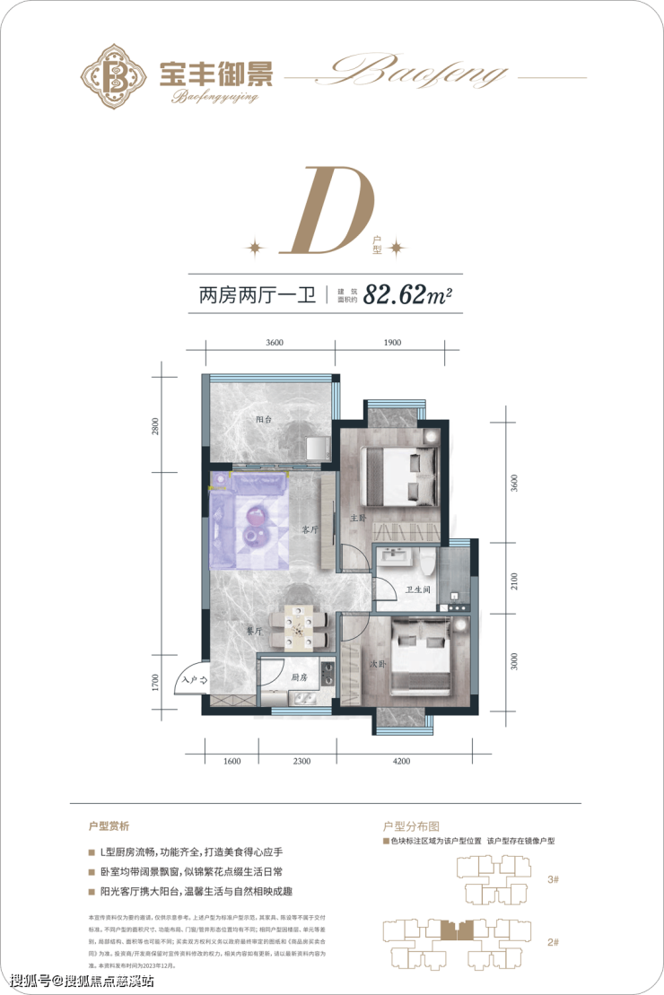 『D户型鉴赏 』 二房二厅一卫一阳台