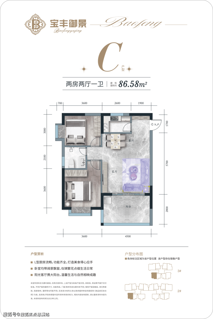 『C户型鉴赏 』 二房二厅一卫一阳台