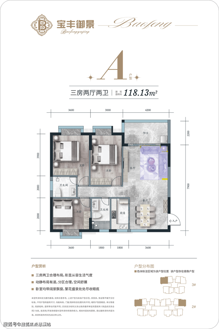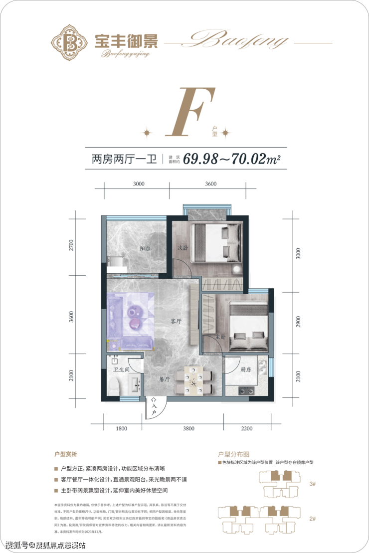 『F户型鉴赏 』 二房二厅一卫一阳台