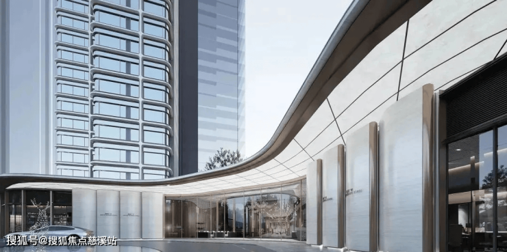 ◎长达约120米弧形主入口界面,城市级封面门庭,集萃名贵奢石臻造,铺陈都会风华,礼遇当代门庭,呈现繁华CBD里的曼妙意境。