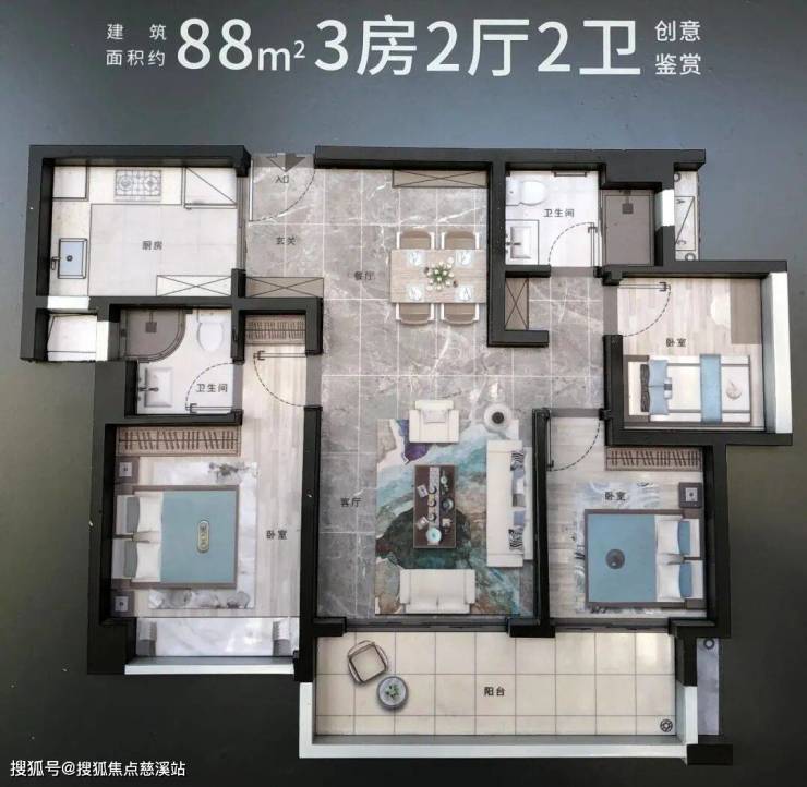 建面约88㎡3房2厅2卫