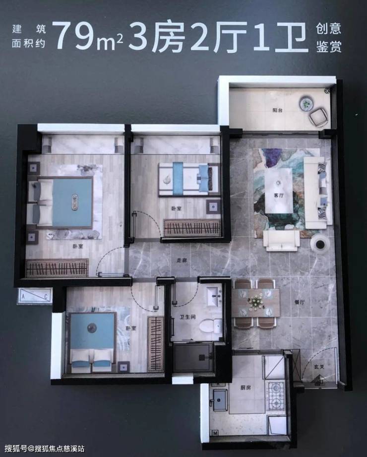 建面约79㎡3房2厅1卫