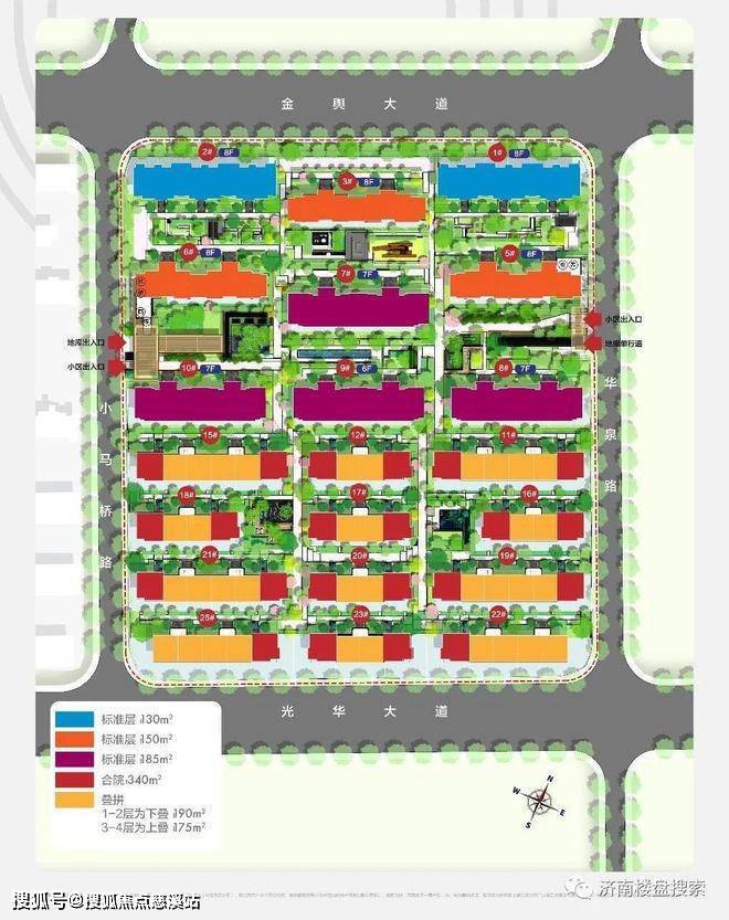 11#楼—25#楼为叠拼别墅、合院别墅。其中,上叠户型面积175平,下叠户型面积190平,合院户型面积340平。