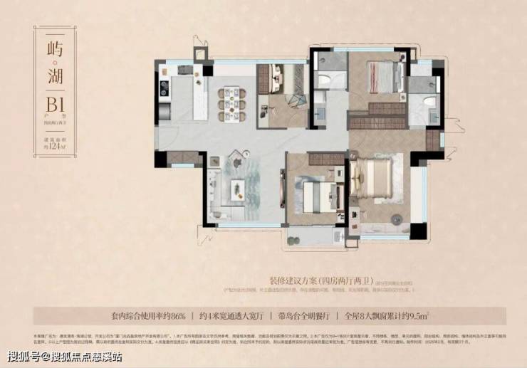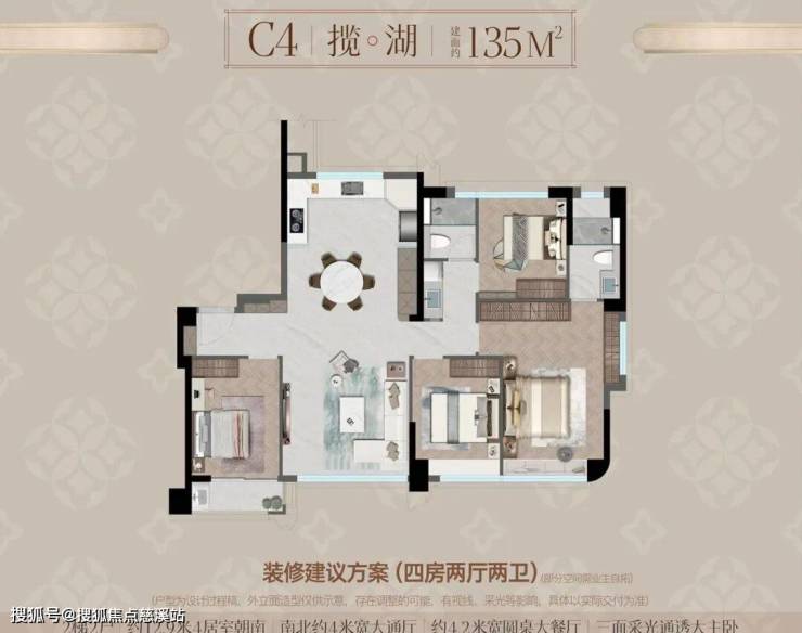 •瑞湖公馆主力户型有三居室和四居室,三居室建面约96㎡,为3室2厅2卫;四居室建面有124㎡、133㎡、165㎡、167㎡、172㎡等,均为4室2厅2卫或4室2厅3卫布局;
