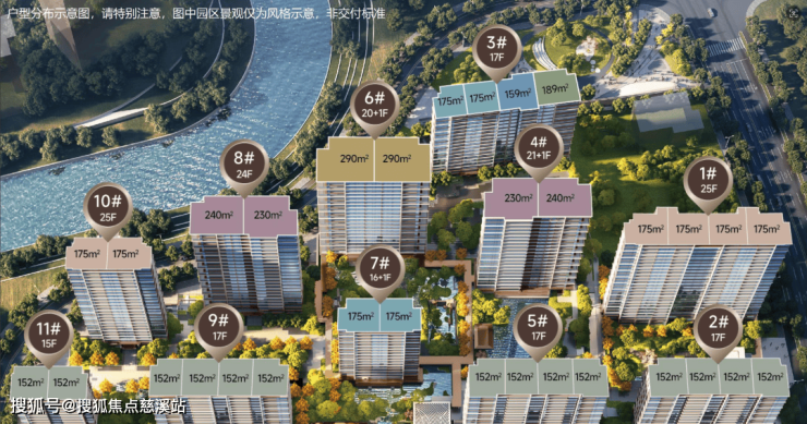 普通住宅为152/175/159/189㎡;第四代住宅户型面积为230/240/290㎡。