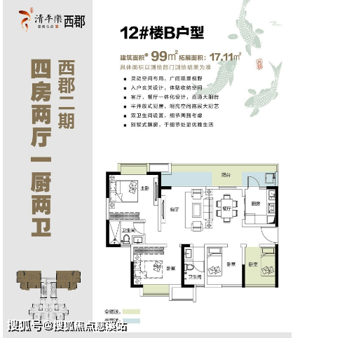 B户型 四室两厅一厨两卫 建筑面积99㎡