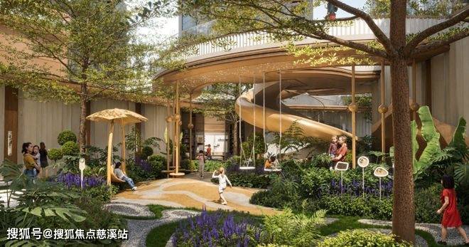 以“下沉庭院+地面中心景观+约2100㎡屋顶花园”构建出多维立体景观,大体量「包裹式绿化」让社区拥有了罕见的全景观系统。