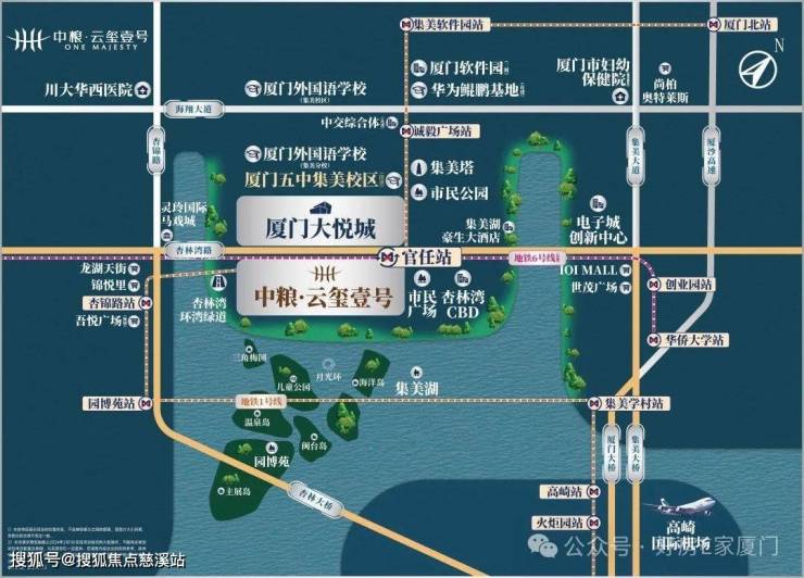 集美新城核心区沿湖最后南向一线湖景住宅地块!由实力央企中粮集团大悦城控股、厦门国企轨道建设发展集团、安居控股集团强强联合开发,36万㎡“大悦城综合体&壹号系住宅”高端品质大盘。项目体量约36万㎡双地铁TOD品质大盘(14栋高层住宅1361户,自持约10万m²大悦城商业综合体)