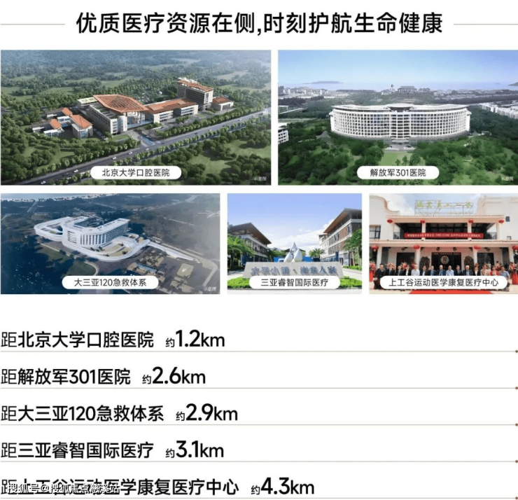 解放军301总院海南分院、北大口腔医院、赫尔曼运动康复医院、上工谷运动医疗康复中心等,业主享全维度医疗资源环伺,为健康筑起安心屏障。