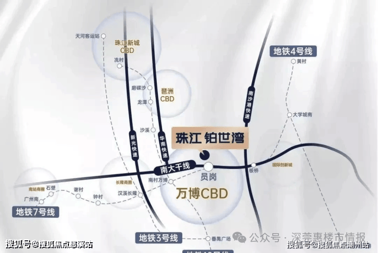 从万博珠江城出发,500米抵达员岗站,7号线+18号线快意出行,1站到南村万博、4站到琶洲、5站到珠江新城;项目500米接驳南大干线贯通主城。立体的TOD交通模式,解锁从容出行的日常。更重磅的是,在项目北面将规划过江隧道,未来可实现5分钟内直通大学城。将吸引大学城教职工、精英人才等高知人群,圈层氛围更纯粹;进一步放大项目的产学研融合优势,滋养更高质精尖的实力大城。