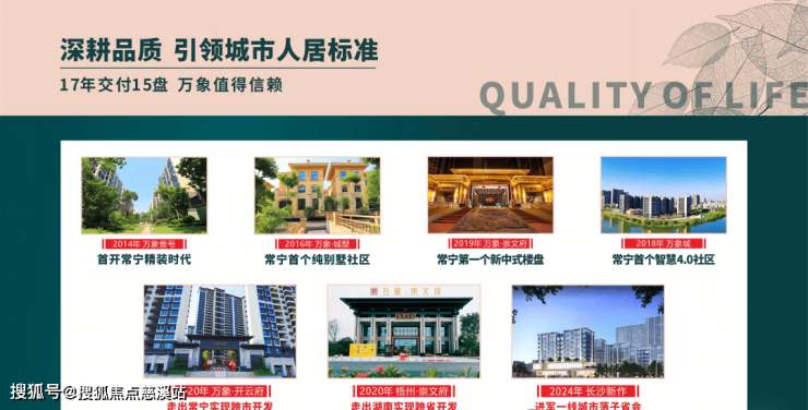 万象地产成立于2007年,秉承“诚心、良心、责任心”的开发理念,为客户提供“好设计、好品质、好服务、好价格”的产品。