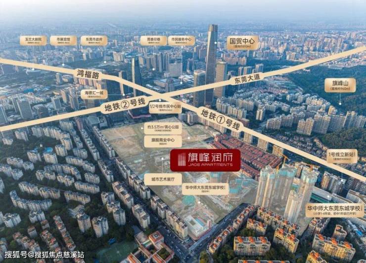 同时旗峰润府位于东莞黄金十字轴心,时代发展轴东莞大道与山水文化轴鸿福路交汇处,近享地铁1号线、2号线双轨双地铁站(市民中心站、立新站)出行,这片稀贵的“莞心最后留白地”,不仅是地理空间意义上的中芯,更是当下与未来城市资源、政策、发展动能聚集的价值中芯。占位于此,不仅是占位旗峰千年过往的绝佳观景台,更是占位于东莞的现在与未来。