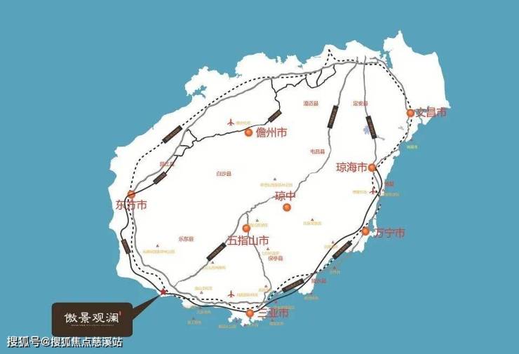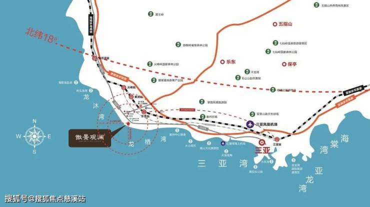 项目紧邻三亚市崖州区,距海岸线仅2.5公里,距乐东高铁站3公里、距环岛高速入口5公里,紧邻海榆西线、文化旅游轻轨等交通设施,出行便利,距三亚市区仅60公里,40分钟车程可达三亚凤凰机场。