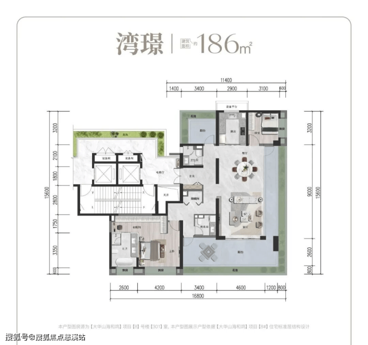 2. 产品户型:户型建面112-186㎡三/四房,带超高赠送(112㎡赠36㎡、132㎡赠44㎡、143㎡赠50㎡、186㎡赠60㎡),最高得房率120%,打造四代户型设计。