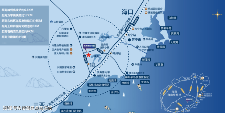 飞机场:距离博鳌机场约62公里、三亚机场约97公里,海口机场约145公里;