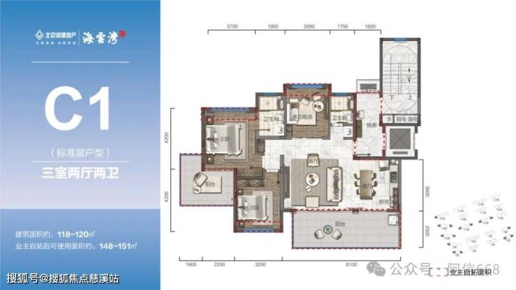 105-120㎡三房、132㎡四房