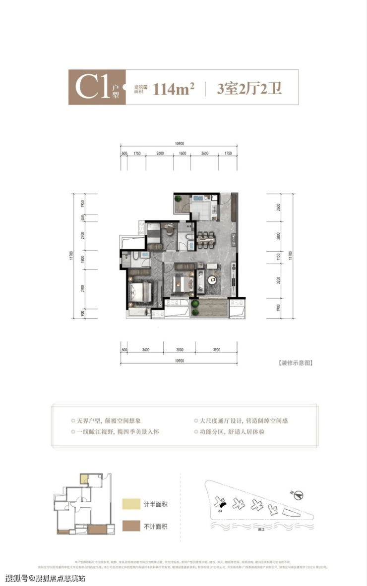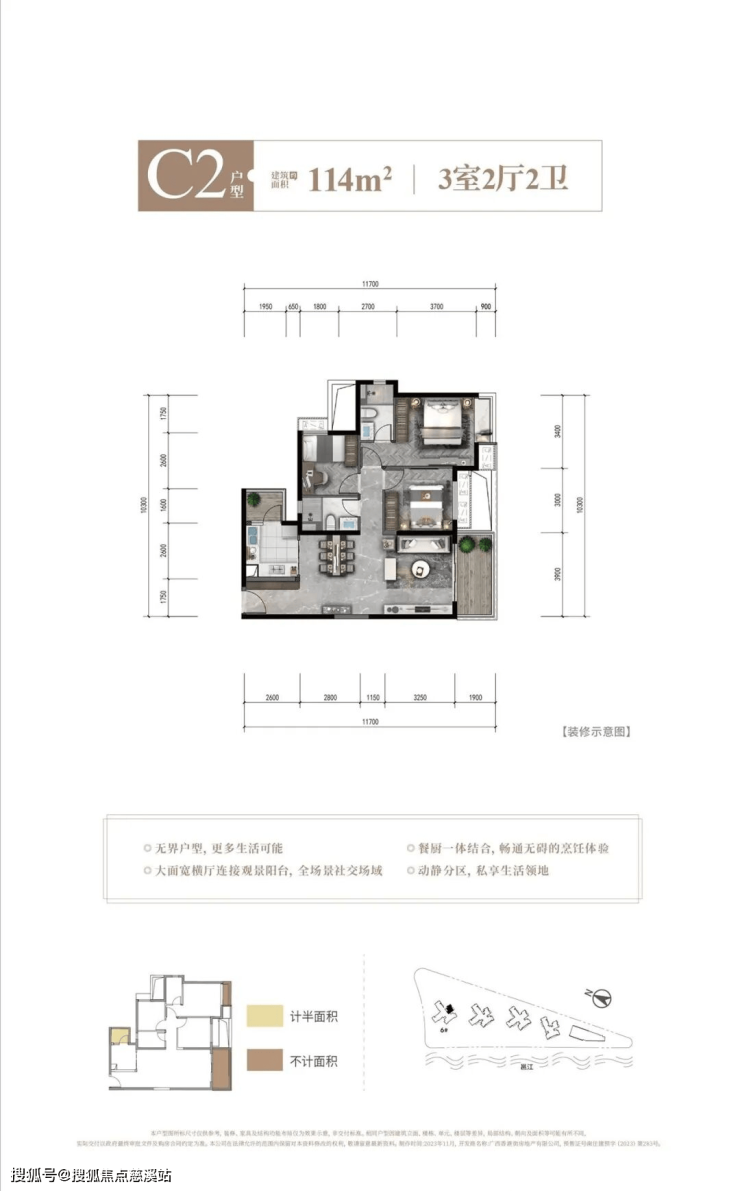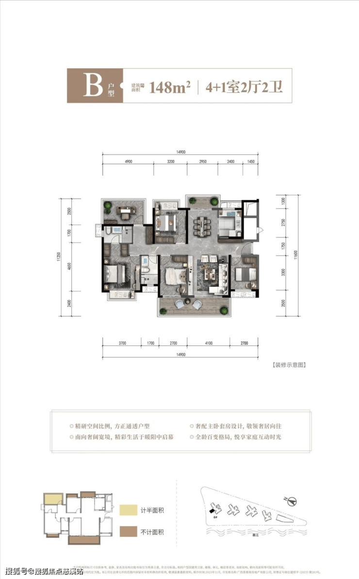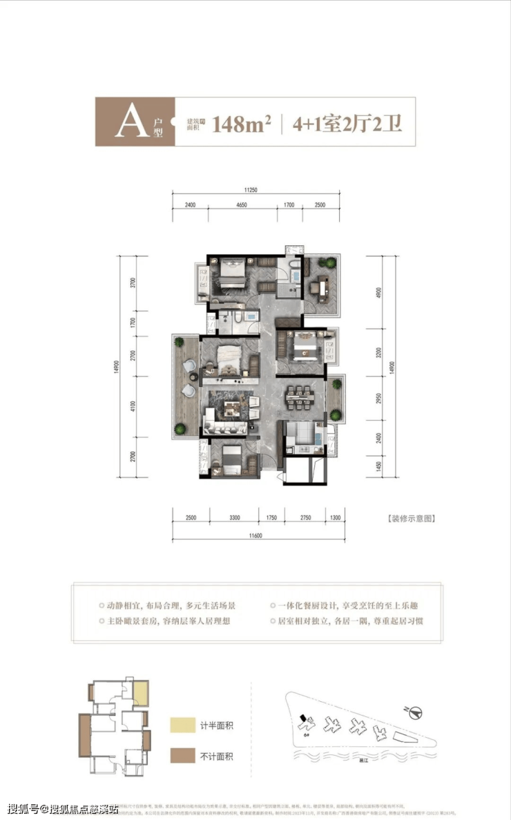户型面积:建面约113-147㎡,三至五房