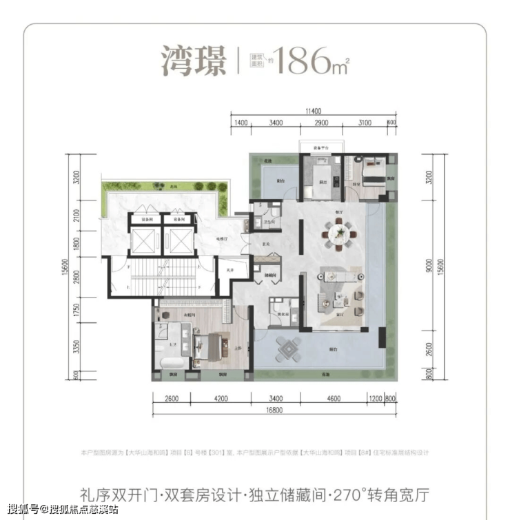 【面积区间】建筑面积约112㎡、132㎡、143㎡、186㎡