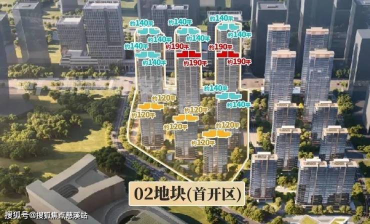 02地块规划了3个面积段,120-140-190平,都是南北对流双阳台四房。