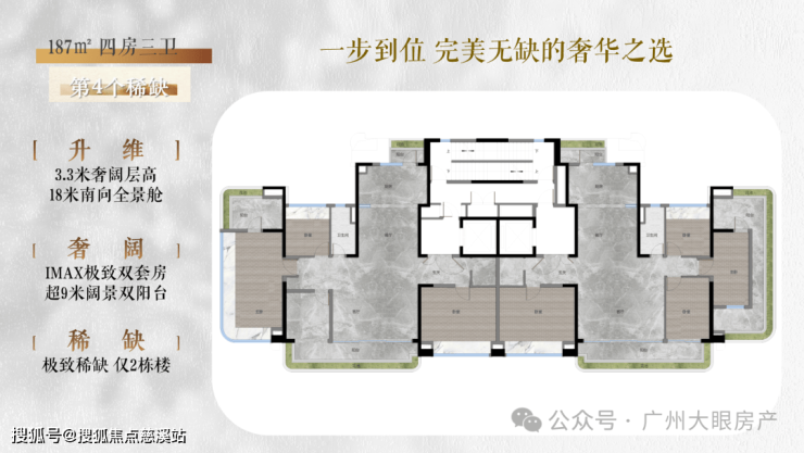 尤其值得一提的是,项目大门长达88米,高达10米,被誉为广州门王,大量运用奢华石材,彰显非凡气派。