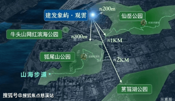 北面仙岳山公园、南近狐尾山公园、西近牛头山网红海滨公园,1KM即是山海健康步道,建发象屿·观雲“三山一海”的稀缺生态在厦门也是屈指可数的。