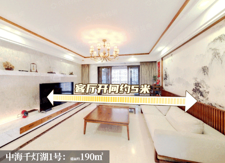 就说客厅吧,旧规190㎡的客厅开间约5米左右,在佛山很多二手大平层都是这个尺度。
